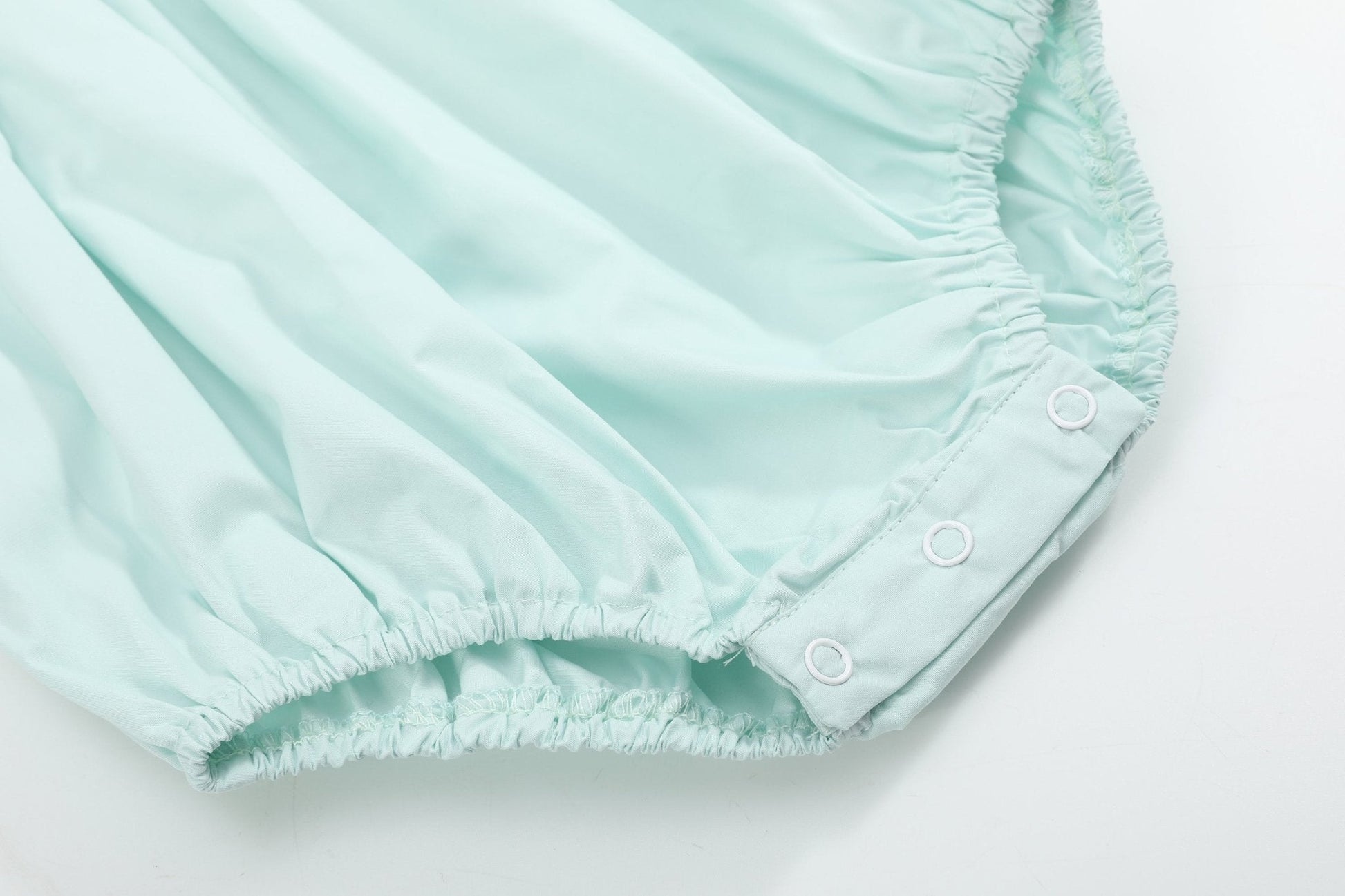 The Misty Blue Easter Bunny Smocked Bubble is a charming and festive outfit perfect for spring celebrations. Featuring a beautiful smocked neckline embroidered with sweet Easter bunnies, this bubble is made from 100% soft cotton for breathable comfort. Designed with a classic bubble silhouette, it includes snap closures for easy diaper changes and comfortable all-day wear. Ideal for Easter gatherings, photos, and sunny spring days, this adorable bubble is sure to make your little one look picture-perfect.